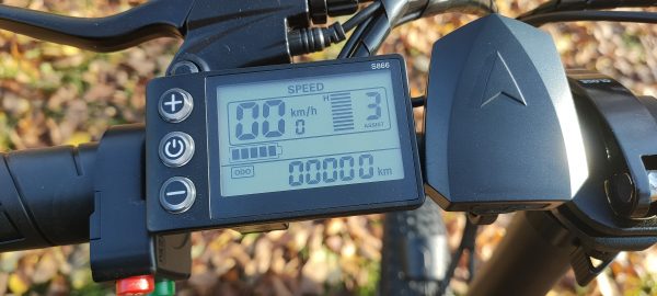 Displej zobrazuje aktuálnu rýchlosť, možnosť výberu 3 režimov pomoci pri pedálovaní. Obsahuje aj otočný „plyn“. Taktiež na riadidlách nechýba USB vstup pre napájanie zariadení.
