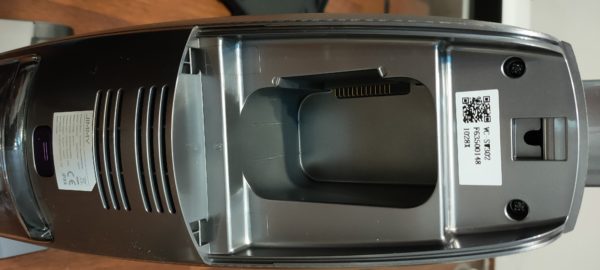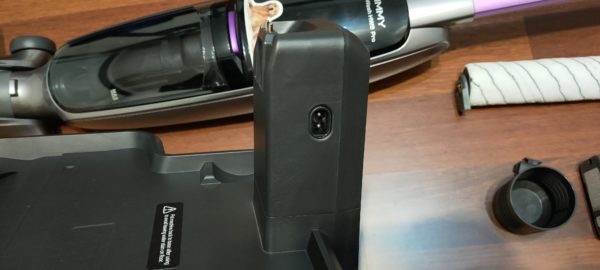 Vysávač sa nabíja automaticky, stačí ho postaviť na stojan. Na displeji vysávača môžeme vidieť stav batérie.