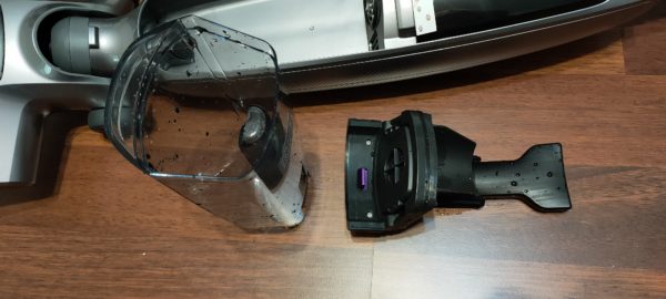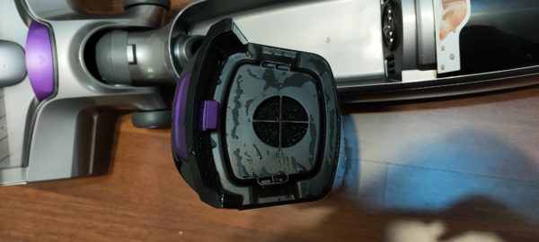 Zo zadnej strany nižšie vysávač obsahuje nádržku na vodu zriedenú s umývacím prostriedkom. Umývací prostriedok sa nachádza priamo v balení k vysávaču.