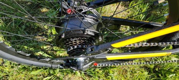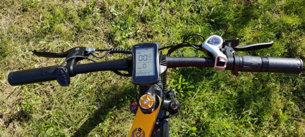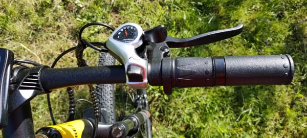 E-biku nechýbajú kvalitné prehadzovače spoločnosti Schimano, prevodov je 7. Na pravej strane riadidiel ďalej nájdeme brzdu, rotačné pridávanie „plynu“ rovnako ako na motorkách. Vďaka rotačnému pridávaniu e-bike funguje aj na čisto elektrický režim.