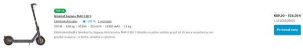 Ak by sme mali túto kolobežku porovnať s cenami iných modelov kolobežiek, tak na trhu nájdeme napr. Ninebot Max G30 v cene 689€ na slovenskom trhu.