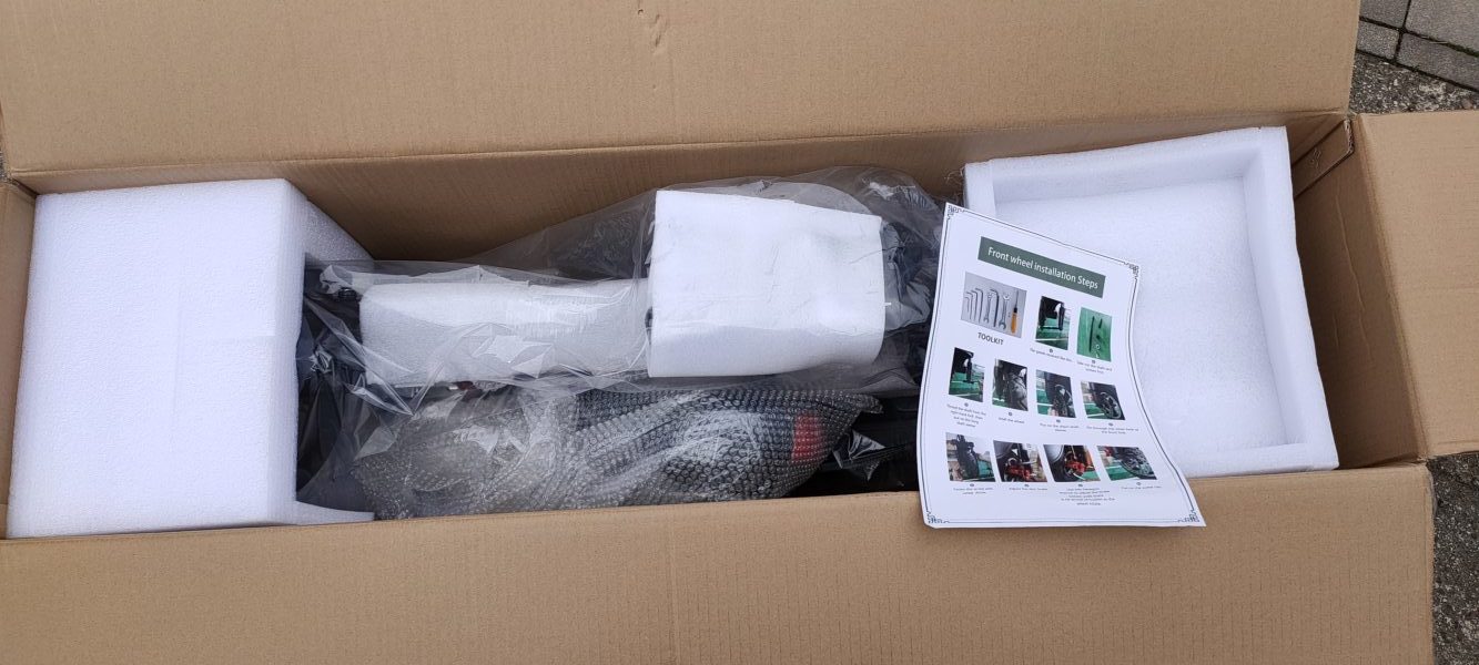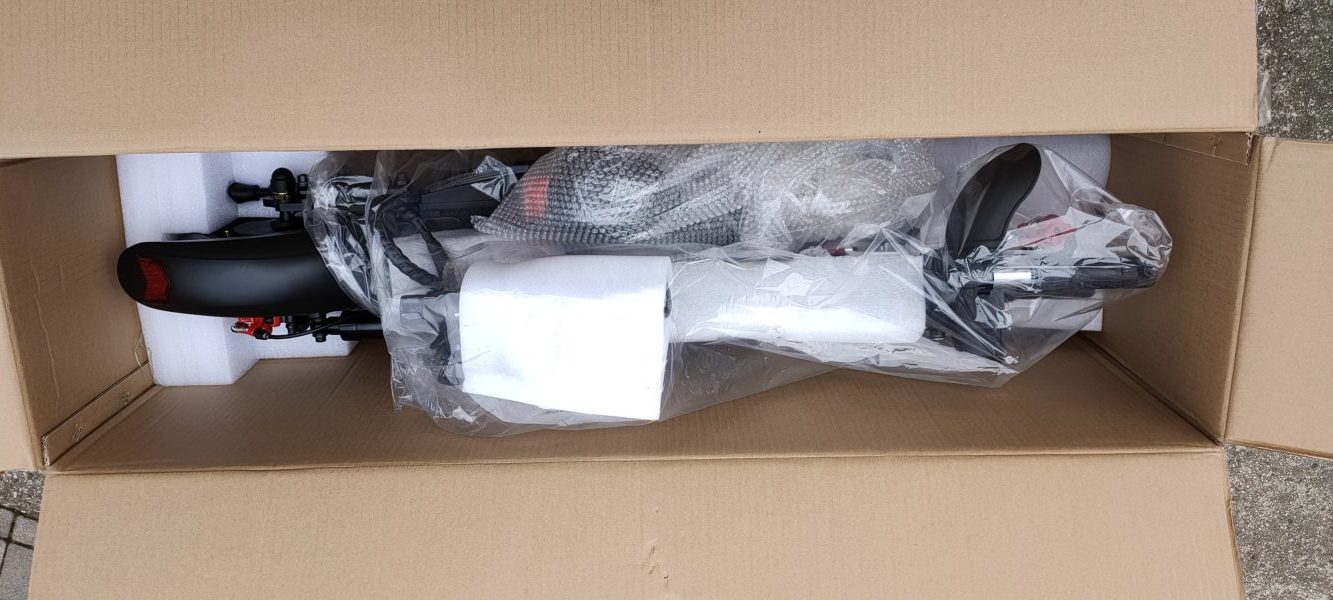 Samotná kolobežka bola chránená ochrannou penou, taktiež kolobežka bola obalená plastom, ktorý ju chráni pri prevoze.