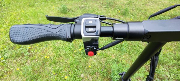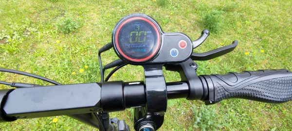 Na riadidlách sa nachádzajú dve brzdy, zvonček, pridávanie plynu. Na samotnom displeji nájdeme percentuálny stav batérie, aktuálnu rýchlosť, možnosť prepínania 3 režimov jazdy.