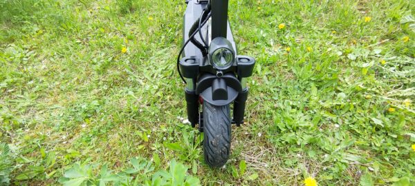 Nechýba svetlo na prednej strane, kolobežka vo svojej cene dokonca obsahuje aj predné tlmiče, v jej cene žiadna konkurencia tlmiče nemá