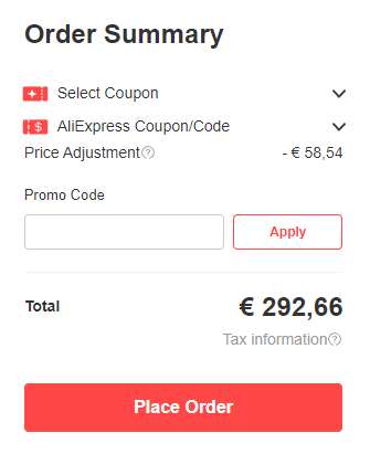 cena klesne na hodnotu: 292.66€, poštovné je zadarmo. Keďže sa produkt nachádza v EU sklade, ďalšie poplatky navyše pri doručení neplatíte. Tip: Z EU krajín nikdy nebudeš platiť colné poplatky, prečo je to tak? Poznáme odpoveď.