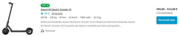 Ak porovnáme s konkurenciu, Xiaomi Scooter 1S sa na Slovensku predáva v cene 358€, ušetríte tak 153€.