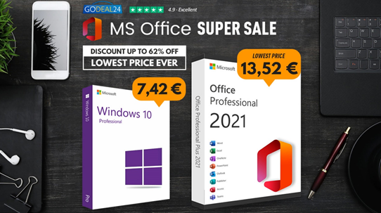 - Windows 10 Pro + Office 2021 Pro Plus – Bundle – 29.70€