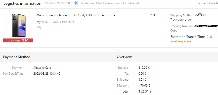 26. august 2022 – Otestovaná objednávka z EU skladu na Gshopper, smartfón doručený len za 1 deň od odoslania
