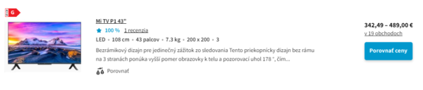 Na Slovensku sa predáva podobný model Xiaomi Tv s rovnakou uhlopriečkou v cene 342€, ušetríte tak 61€.