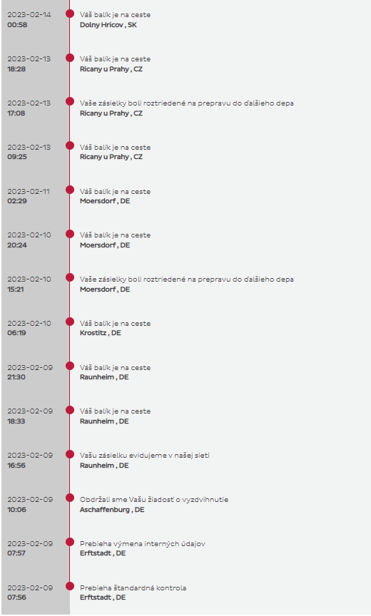 Kolobežka bola odoslaná 9. februára a dorazila 14. februára.