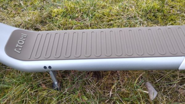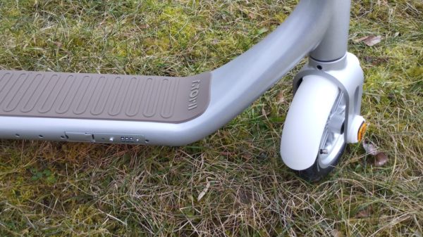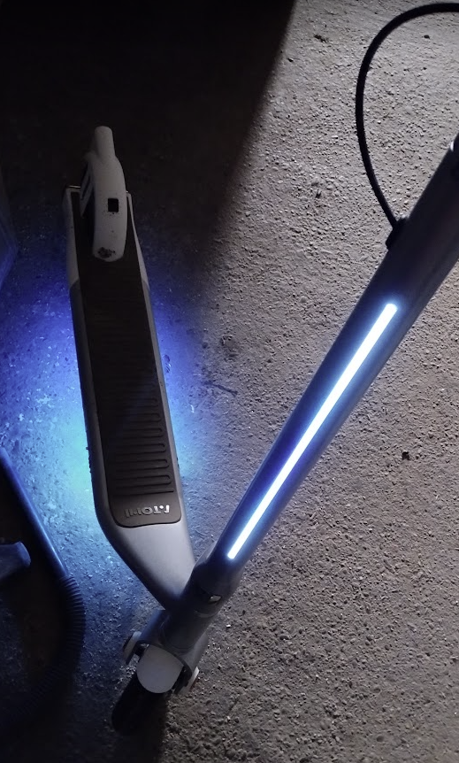 Na prednej strane nechýba svetelný pás integrovaný v ráme kolobežky. Podsvietenie kolobežky je aj zo spodnej strany.