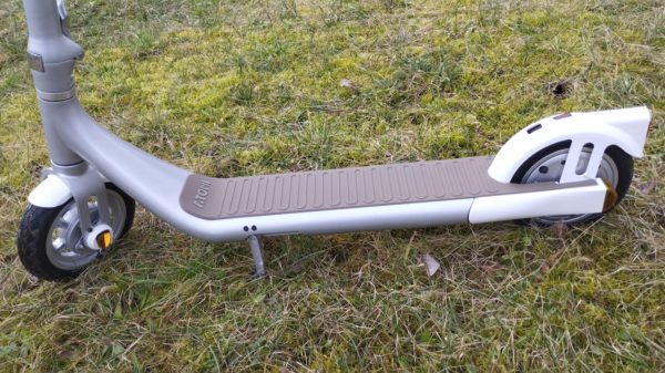 Atomi Alpa kolobežka ponúka výkon na úrovni až 650W. Poteší dojazdom na úrovni 40 km, nosnosťou na úrovni 120 kg. Výhodou sú 9 palcové nafukovacie pneumatiky, vďaka ktorým pri jazde odolá nerovnostiam. Dobrou správou je aj zapnutie elektromotora pri 0 km / hod. rýchlosti. A najlepšou funkciou je integrovaný zámok v ráme kolobežky, ktorému je možné definovať vlastný kód. Podsvietenie na prednej strane alebo zo spodnej strany kolobežky je veľmi pekné.