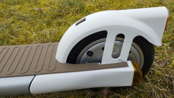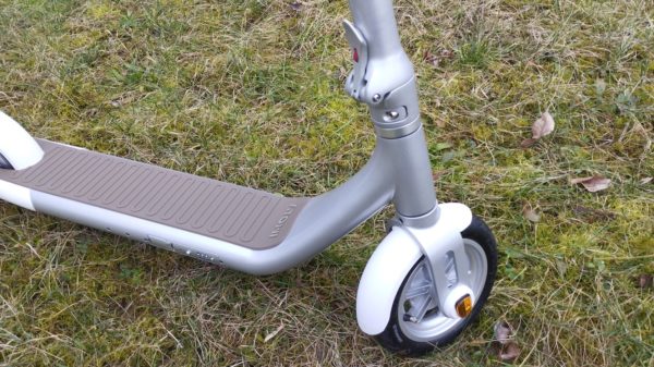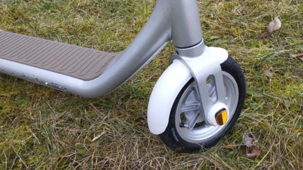 Výhodou kolobežky sú nafukovacie pneumatiky, 9 palcové.