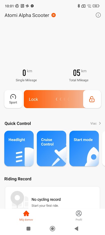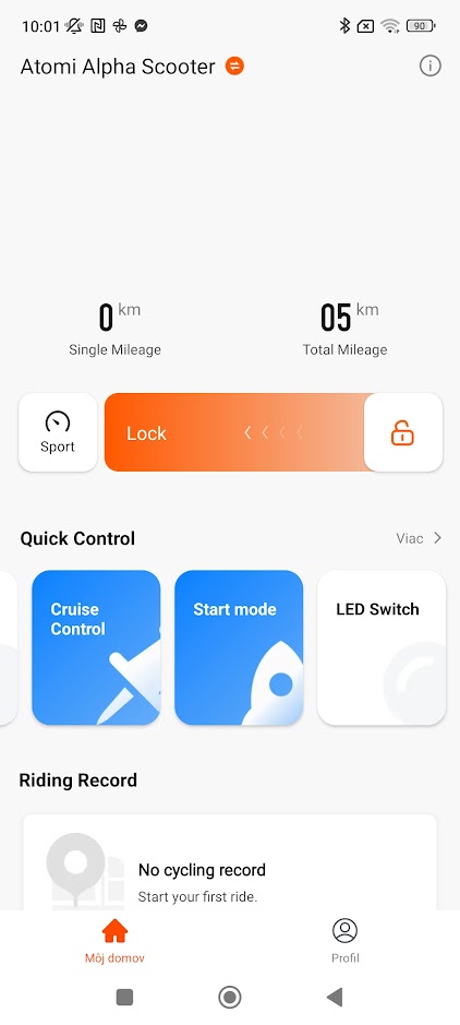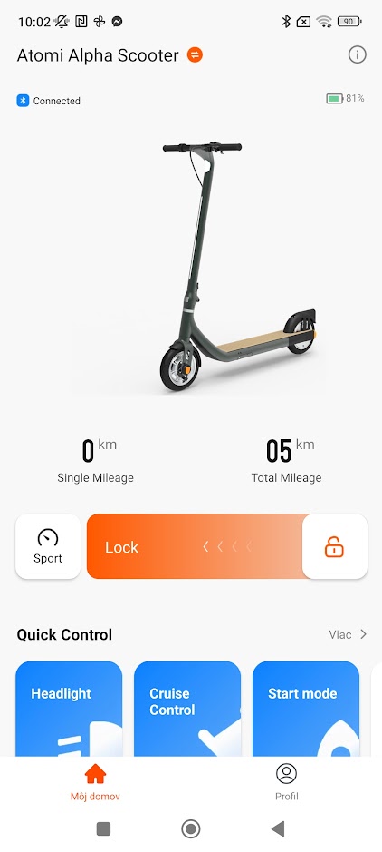 V aplikácii je možné nastaviť tempomat, kedy po 8 sekundách jazdy pípne, zero štart, kedy ťahá od 0 km/hod. Ďalej je možné v appke nastaviť aj automatické svietenie, nastavenie podsvietenia alebo farieb. Aj scén prepínania farieb podsvietenia. Samozrejmosťou je aj uzamknutie kolobežky aplikáciou. Všetky tieto funkcie majú v manuáli ku kolobežke aj vlastné skratky. To znamená, že tlačidlom pod displejom sa daná funkcia zapne alebo vypne.