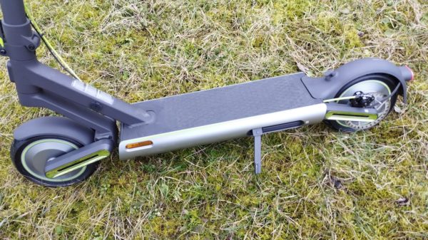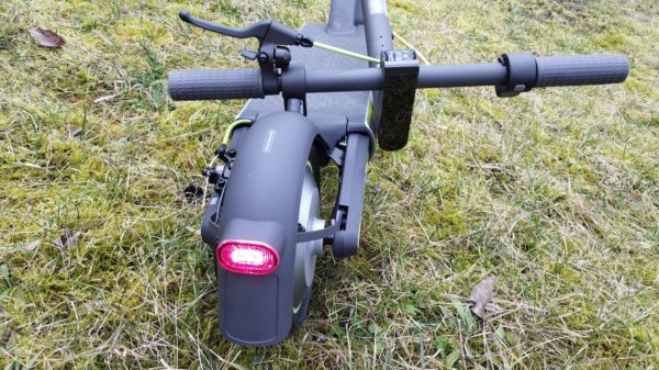 Odrazové sklíčka sa nachádzajú po stranách, ale aj na prednej strane. Obrovskou výhodou oproti konkurencii je predné aj zadné odpruženie kolobežky