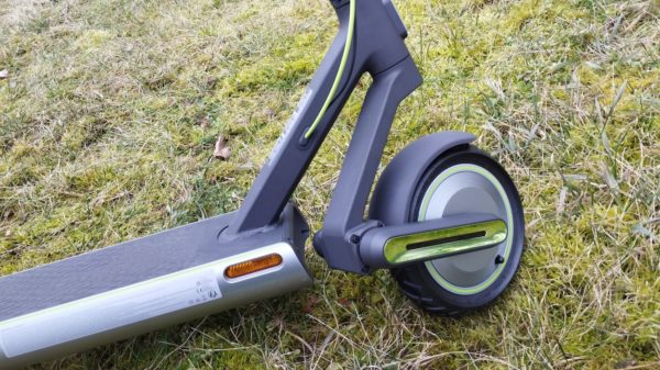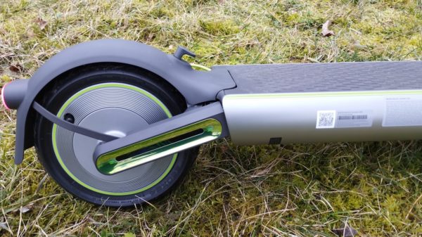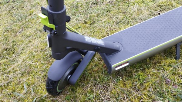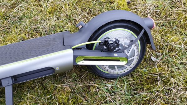 Pneumatiky sú 10 palcové, nafukovacie, pohon je zadný, čo má za následok, že pri strmom kopci kolesá neprešmykujú, preto vždy kupovať kolobežku so zadným pohonom