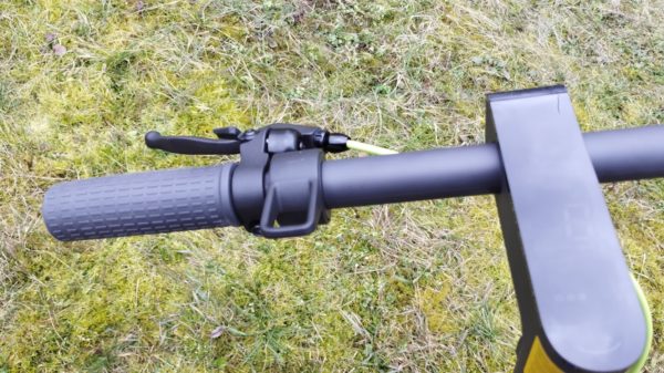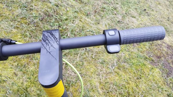 Na pravej strane sa nachádza zapínacie tlačidlo kolobežky, otočné tlačidlo pre akceleráciu
