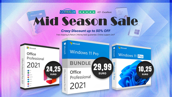 - Windows 11 Professional + Office 2021 Professional Plus – Spring Bundle – 29.99€