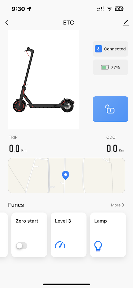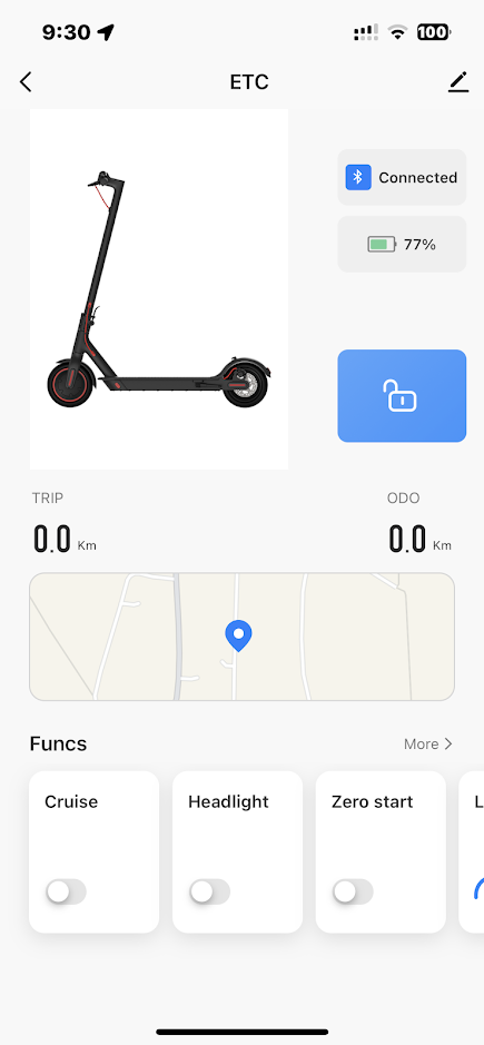 Kolobežka dokonca obsahuje aj aplikáciu pre smartfón, aplikácia s názvom Tuya. Vďaka tejto aplikácii je možné uzamknúť kolobežku, nastaviť tempomat, kedy kolobežka po 8 sekundách jazdy pípne a ťahá sama. Tempomat sa vypína stlačením brzdy.