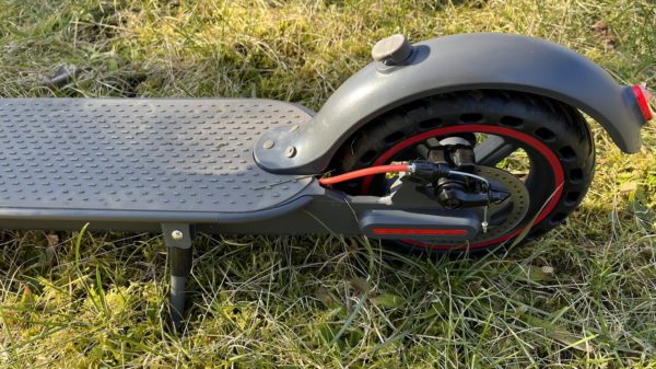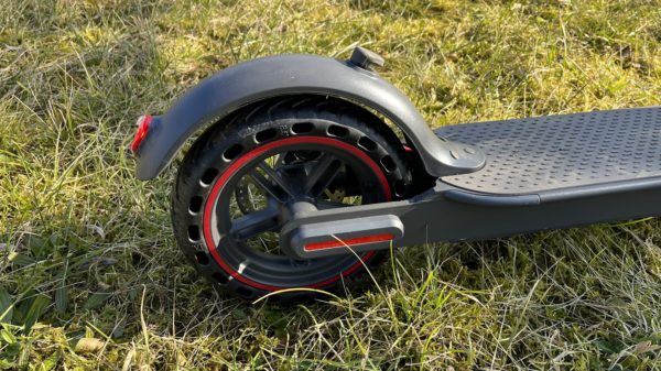 Brzdy kolobežka má dokonca kotúčové. Pneumatiky sú 8.5 palcové, bezdušové.