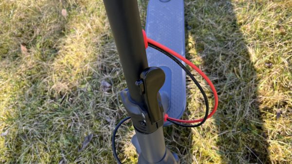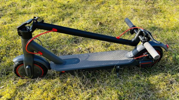 Kolobežku je tak možné jednoducho zložiť a zvonček pripevniť o háčik na blatníku, kedy ľahko kolobežku prenesiete