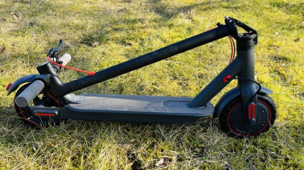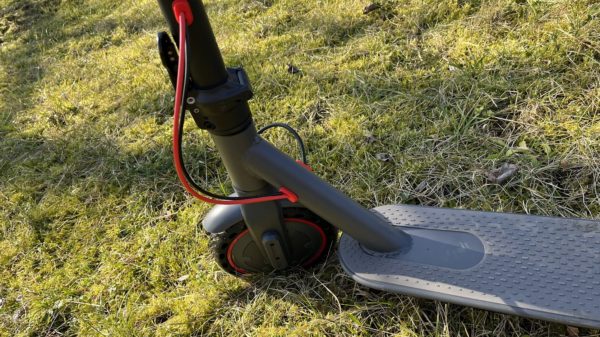 Na bočných stranách kolobežky nechýbajú reflexné červené pásy.