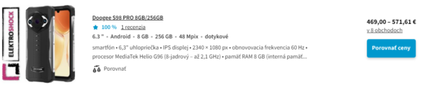 S kupónom ušetríš, aj darček, o 57€ lacnejší ako na SVK: Vodotesný DOOGEE S98 Pro s termokamerou, s 256GB úložiskom, 8GB RAM za 412.66€, na SVK 469€