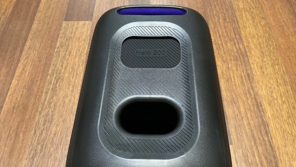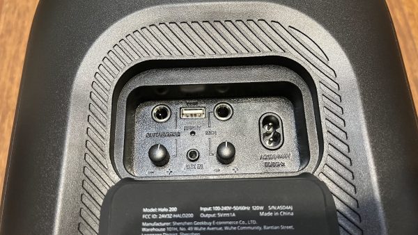 Výhodou je, že na samotnom ovládanom paneli z ľavej strany nájdeme LED diódky určujúce zostávajúcu kapacitu batérie. Výdrž je tak na úrovni až 18 hodín. Ďalej sú tu tlačidla pre efekty, otočné tlačidlo pre pridávanie zvuku. Ďalej tlačidlo pre automatické párovanie s mikrofónmi, tlačidlo pre vizuálne efekty, tlačidlo pre zvukové efekty, tlačidlo pre prepínanie výstupov bluetooth / USB, AUX.