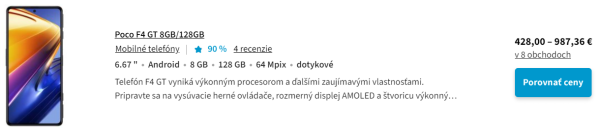 S kupónom ušetríš, Gshopper, aj darček, o 83€ lacnejší ako na SVK: Herný Poco F4 GT s ohromným 120W nabíjaním, 128GB, 8GB RAM za 345.26€, na SVK 428€