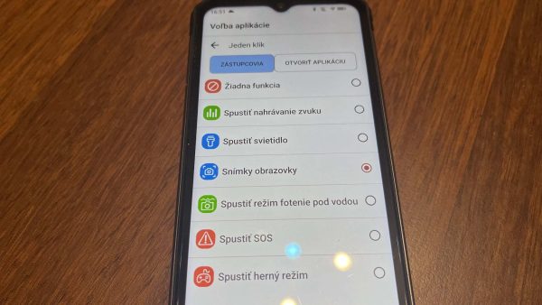 V nastavení Funkcia bočného tlačidlá nastavujete funkciu bočného tlačidla na ľavej strane, možné je ním aj otvoriť ľubovoľnú aplikáciu