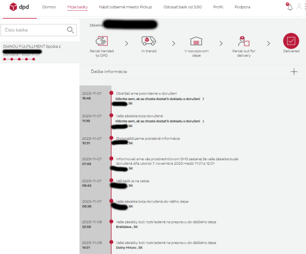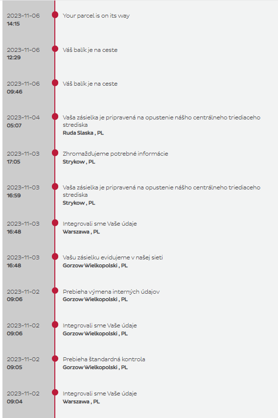 2. novembra 2023 bol e-bike odoslaný z poľského skladu. Úspešne doručený bol 7. novembra 2023. Celková doba dodania od odoslania bolo 5 dní. Keďže produkt sa nachádzal v EU sklade, ďalšie poplatky navyše pri doručení sme neplatili.