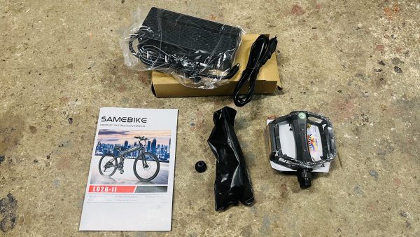 V balení sa nachádza manuál, pedále, EU nabíjačka, k e-biku sú aj 2x kľúče pre demontovanie batérie, výhodou sú aj blatníky v balení