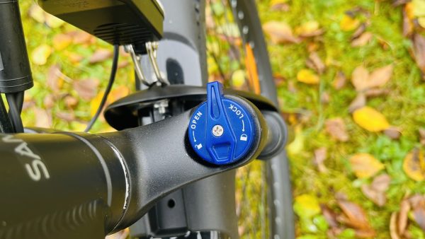 - E-bike obsahuje predné tlmiče, ktoré je možné uzamknúť