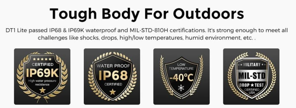 - Certifikácia MIL-Std-810, čo je vojenský štandard zariadenia pre používanie v náročných podmienkach