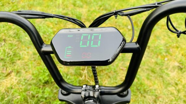 V strede sa nachádza farebný displej zobrazujúci aktuálnu rýchlosť, stav batérie, počet celkových kilometrov