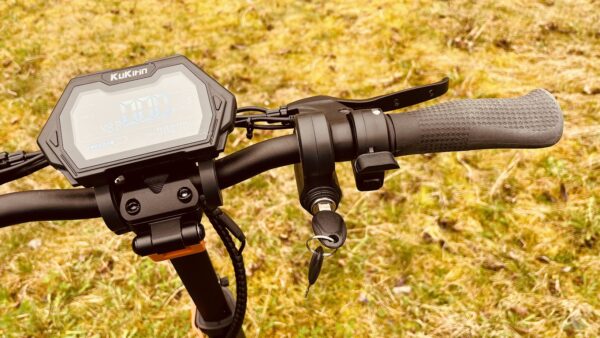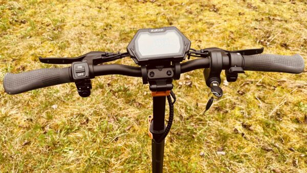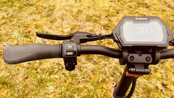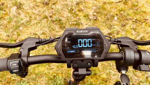 Displej zobrazuje aktuálnu rýchlosť, počet najazdených kilometrov, počet kilometrov aktuálnej jazdy, voltmeter, stav batérie. Displej je skvele riešený, pretože má čierne pozadie a biele číslice, to je ideálne ak svieti oproti slnko, na displej vidíte