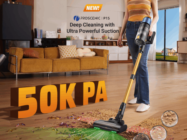 S kupónom ušetríš v EU sklade, Banggood: Proscenic P15 s výkonom až 50 000 Pa, 70 min. výdrž za 101.86€ z pôvodných 112.90€